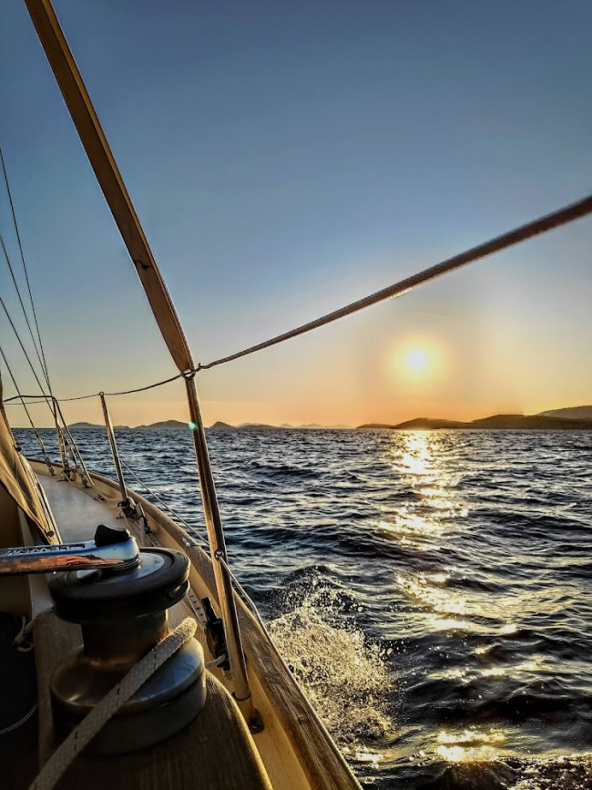 We take off on the boat. Your skipper will introduce you to sailing. Yes, YOU will sail the boat. You will learn a set of hard skills in sailing, basic navigation and prepare a lunch on the boat. We have time to stop for a swim and explore some deserted little islands with a cove. In case we are really lucky, some dolphins might join the ride and accompany the bow of the boat.