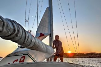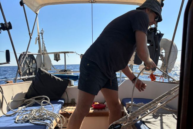 Hands-on, you sail the boat! Head-up, ease the sheets, bow-line? Learn to sail. We avoid to use the engine.