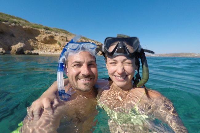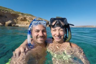 Exploring Makronisi, snorkel in the cave, jump into the Blue Lagoon or dare to dive through an underwater arch.