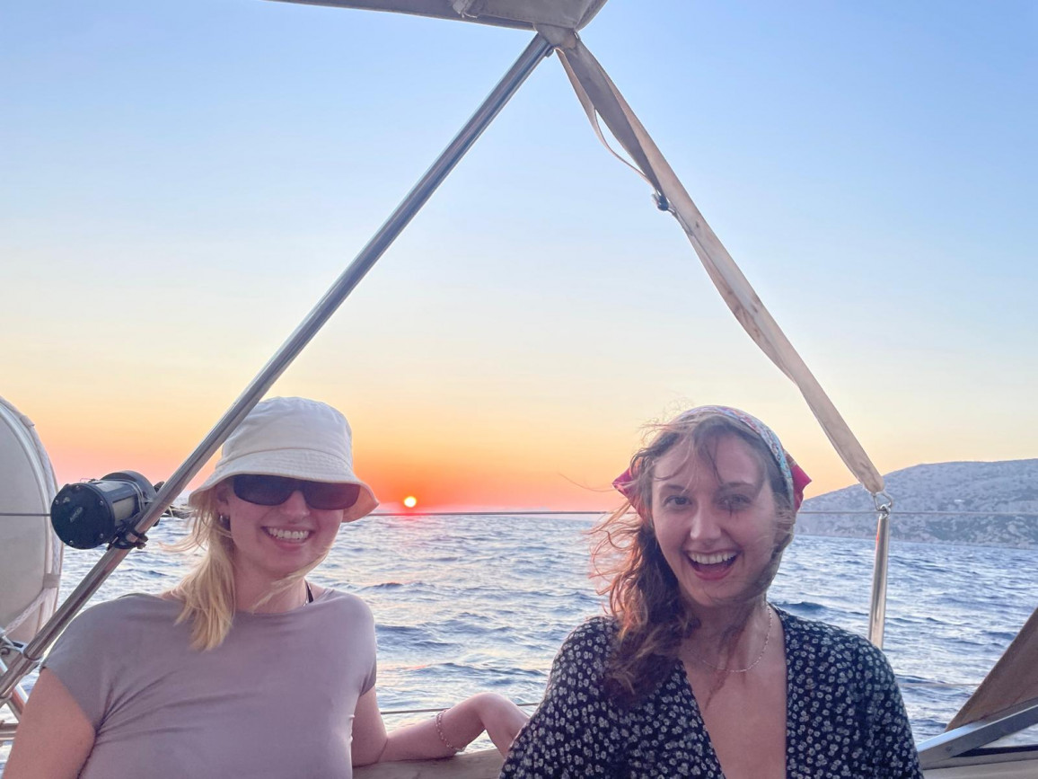 Group lunch on the boat. Delicious Greek Mezze. If we catch - fresh fish! Glas of graci lefko can't hurt.