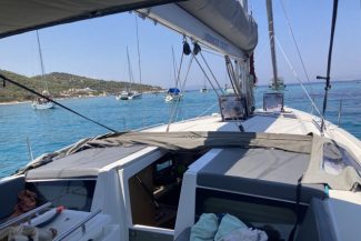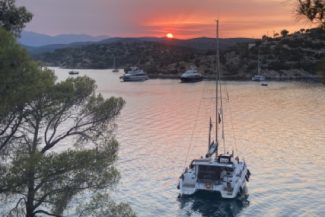 Vernicos Yachts maintains several charter bases in Greece. This family cruise took two families with 4 kids to the natural scenery of the Saronic Gulf and the Eastern Peleponnese Region. Highlights of the Saronic Gulf are the Western bays of Agistri and the Northern cape of Poros for sailors who enjoy serenity and nature. More metropolitan vibes, tavernas and night life can be experienced in Aegina town and Poros.